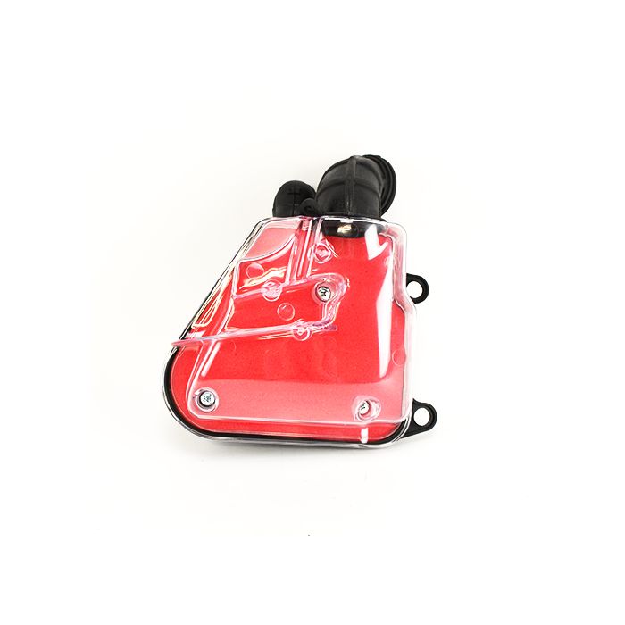 Air filter box complete Minarelli horizontal 2-stroke engine block transparent/transparent with red Air filter box element complete
