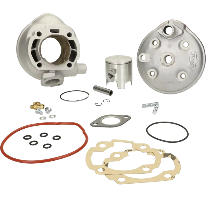 Some key experience is necessary to mount the Airsal 70 cc 2-stroke cylinder. Make sure that no dirt gets into the engine during assembly to prevent damage. Use gasket remover and a gasket scraper to easily remove old gasket residues. Make sure the arrow is facing the plunger towards the exhaust port! After mounting the Airsal cylinder, we recommend adding an extra cap of oil to the gasoline. Drive quietly for 500 km.