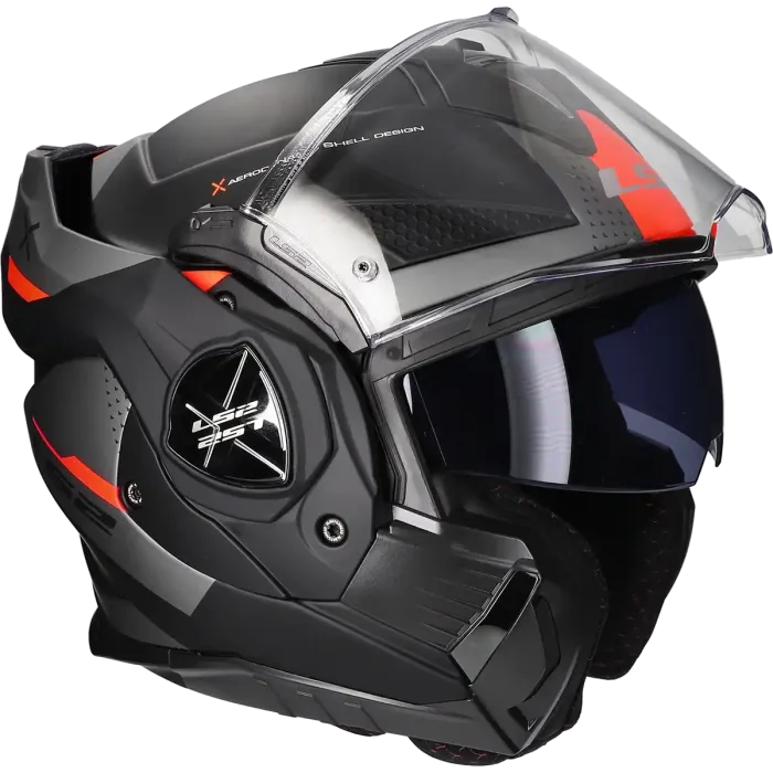 Flip over helmet LS2 Advant X Oblivion FF901 titanium / matt black / red