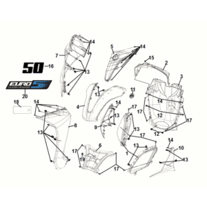 Front inner cover Sym Symphony ST 50 E5 White/Red (WH-8028P) (Red seat)