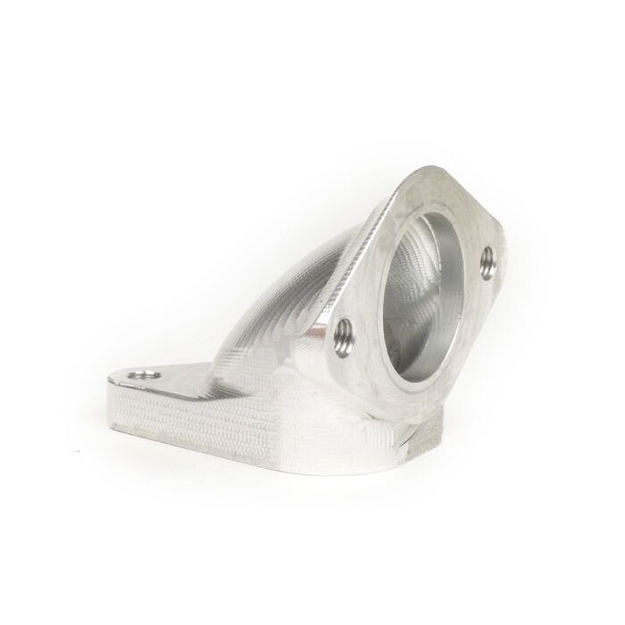 The CAD designed intake manifold is milled CNC controlled from the solid. The intake manifold is suitable for mounting connecting rubbers with 60mm hole stitch. We use and recommend the rubbers from Mark Broadhurst (MB). These are available in two different diameters, suitable for carburettors with Ø24-25mm and Ø28-30mm cross section.