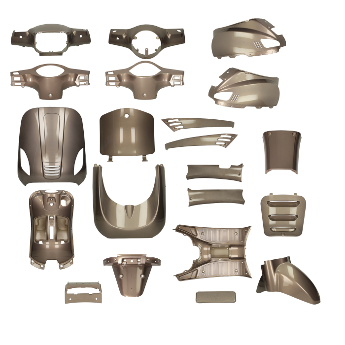 Wil je iets dat er net even chiquer uitziet zonder overdreven te zijn? Met deze champagne kappenset geef je je scooter een luxe uitstraling zonder dat het schreeuwerig wordt. Gewoon strak en netjes afgewerkt.