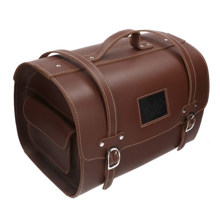 With a leather top case, you have a slightly different look than a traditional plastic top case. It is also known as a doctor's case. You can close it with buckles and have an extra storage pocket on the side. By using a top case, you create much more storage space, so you can make even more use of your scooter in all seasons. Also check out our clothing line that protects you well against rain and cold or a warm leg rug. Properties: - Material: cowhide leather - Color: brown - Lockable: buckles - 38x27x26 cm - 26 litres