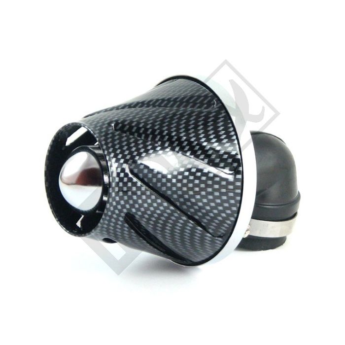 Power filter/air filter open universal Helix 28/35mm carburetor connection at an angle of 90 degrees carbon