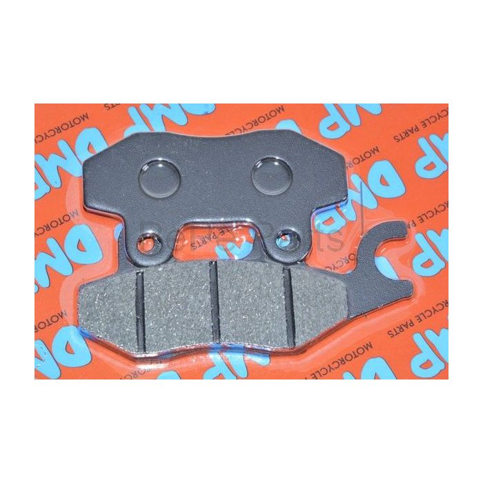This brake pad set is from the brand DMP. The DMP brake pads are produced as replica products. The brake pads have a great fit and are a cheaper alternative than factory original brake pads. If you don't stress your scooter extremely, the DMP brake pads are a great, cheap alternative brake pad set. These brake pads fit various scooters and mopeds. Among others, the Kymco Filly and Kymco New Dink.