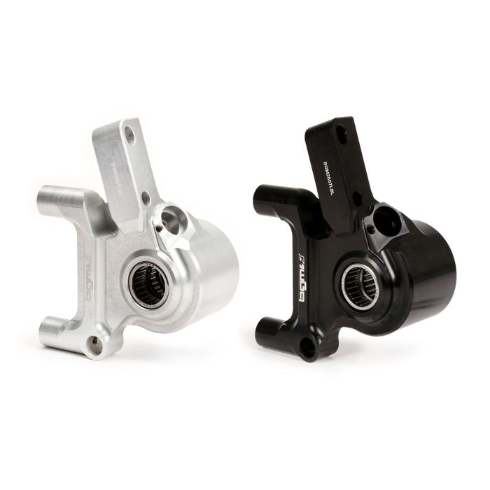 The BGM PRO caliper adapter is made of high-strength aluminum which is CNC machined in a specialized facility in Italy and finally hard anodized. This allows it to withstand the harshest environmental conditions and remain permanently solid and visually appealing. The mount is delivered ready to install, equipped with already mounted high quality needle bearings from European suppliers (SKF/INA).