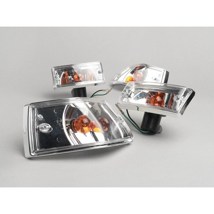 Indicators BGM original set of 4 Vespa PX80, PX125, PX150, PX200, T5 125cc chrome housing clear glass/orange lamps
