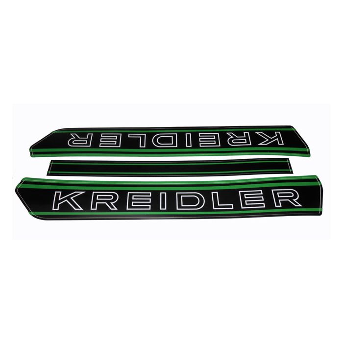 Stickerset/tankstickerset Kreidler zwart/groen nieuw model embleem tank frame /middenbaan 345X23mm/Kreidler stickers 415X50mm