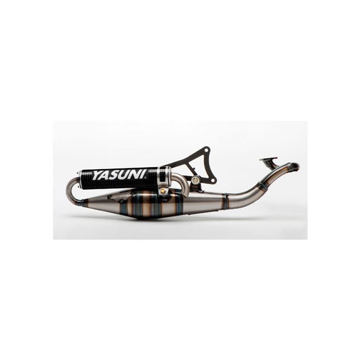 With this Yasuni-Z, the engine needs few modifications to get more power. This exhaust has a Carbon look silencer and is horizontal for Minarelli.