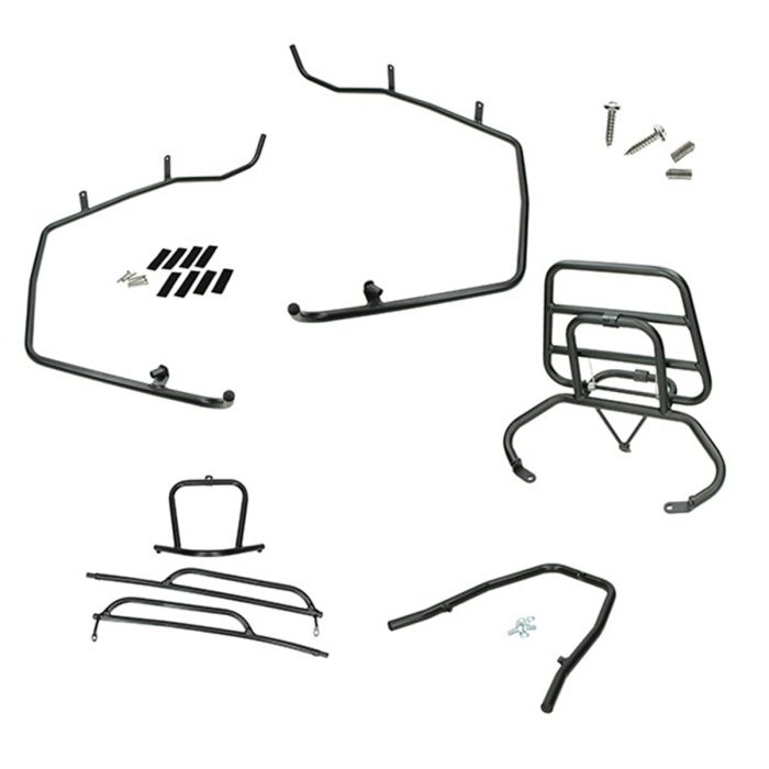 The name actually says it all: a decorative bracket set for the Sym Fiddle. The brackets also help prevent the scooter from falling over to reduce cap damage! The Dmp brackets will be the first to absorb the impact in the event of a fall! The 4-piece matt black decorative bracket set for the Sym Fiddle includes: - crash bars - front fender bracket - rear crash bars - rear folding carrier - mounting materialSym Fiddle matt black DMP 4-piece mounting bracket set